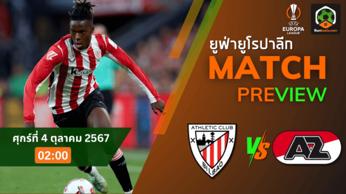 วิเคราะห์ฟุตบอล ยูฟ่ายูโรปาลีก 2024 แอธเลติก บิลเบา พบ อาแซด อัลค์มาร์ วันศุกร์ที่ 4 ตุลาคม 2567 เวลา 02.00 น.