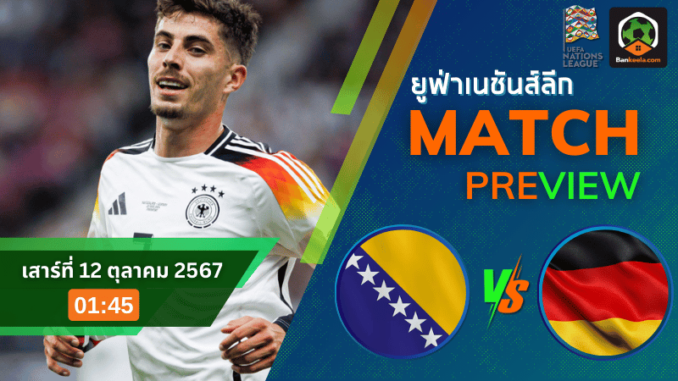 วิเคราะห์บอลยูฟ่าเนชันส์ลีก 2024 บอสเนียและเฮอร์เซโกวีนา ปะทะ เยอรมนี วันเสาร์ที่ 12 ตุลาคม 2567 เวลา 01.45 น.