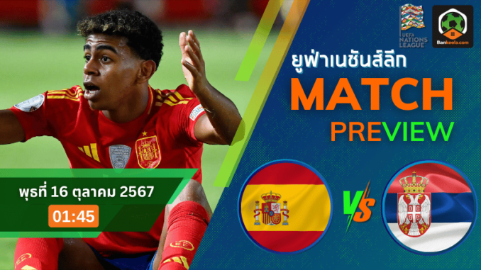 วิเคราะห์บอล ยูฟ่าเนชันส์ลีก 2024 สเปน พบ เซอร์เบีย วันพุธที่ 16 ตุลาคม 2567 เวลา 01:45 น.