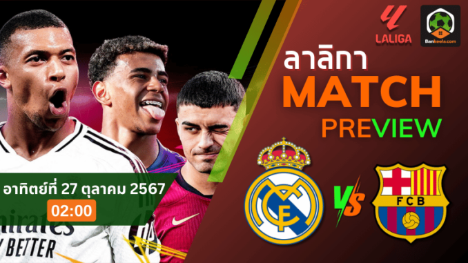 เริ่มแข่งในวันอาทิตย์ที่ 27 ตุลาคม 2567 เวลา 02.00 น. ณ สนาม ซานติอาโก้ เบร์นาเบว โดยขณะนี้ บาร์เซโลน่า รั้งจ่าฝูงอยู่ด้วย 27 คะแนน ขณะที่ เรอัล มาดริด ตามมาอันดับที่ 2 มี 24 คะแนนเท่านั้น หากเกมนี้บาร์เซโลน่าคว้าชัยชนะได้จะทำให้ทิ้งห่างถึง 6 คะแนน แต่หากมาดริดสามารถเบียดเอาชนะไปได้ คะแนนจะเท่ากันทันที ซึ่งเรียกว่าเป็นแมตช์ชี้ชะตาสำหรับการคว้าแชมป์ฤดูกาลนี้อย่างแท้จริง ทีเด็ดบอล นัดนี้ต้องไม่พลาด!