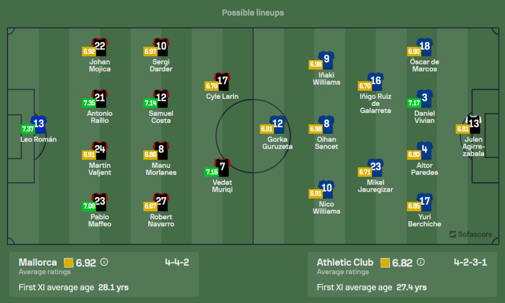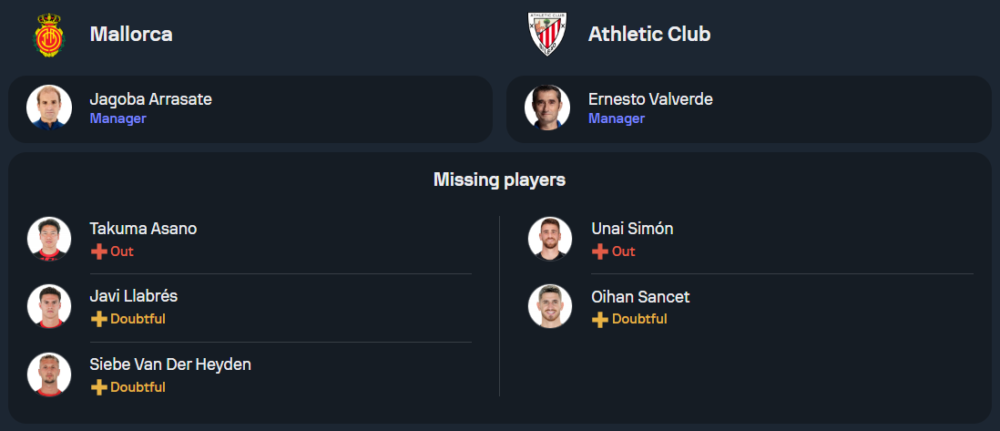 มายอร์ก้ายังคงมีปัญหาผู้เล่นบาดเจ็บ โดยทาคูมะ อาซาโนะ ยังไม่พร้อมลงสนาม ส่วนอิบัน กูเอร์ย่า ที่เพิ่งหายจากอาการบาดเจ็บนั้นยังคงต้องรอความฟิต อย่างไรก็ตาม ทีมยังมีความพร้อมโดยจะยึดผู้เล่นชุดหลักจากเกมที่ผ่านมาลงสนามในระบบ 4-2-3-1 นำทัพโดยกองหน้าตัวเป้า เวดัต มูริกี้ ซึ่งพร้อมไล่ล่าทำประตูเพื่อเก็บแต้มในบ้าน