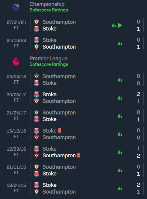 จากการพบกันในอดีต เซาแธมป์ตันเป็นฝ่ายแพ้สโต๊ค ซิตี้ในเกมล่าสุดด้วยสกอร์ 0-1 และสถิติการพบกันในระยะหลังไม่เป็นใจให้เซาแธมป์ตันมากนัก โดยพวกเขาชนะเพียง 3 ครั้ง เสมอ 2 ครั้ง และแพ้ถึง 5 ครั้ง ทำให้ความมั่นใจของทีมดูจะตกลงเมื่อเจอกับสโต๊ค ซิตี้ ซึ่งเซาแธมป์ตันต้องเรียกฟอร์มกลับมาอย่างเร่งด่วนหากหวังจะผ่านเข้ารอบในศึกนี้