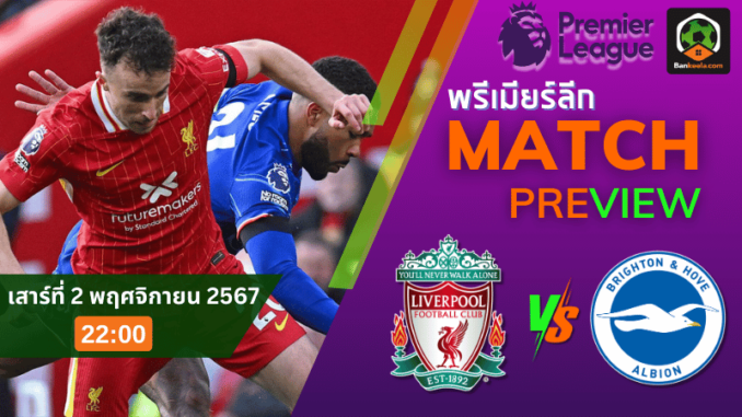วิเคราะห์บอลพรีเมียร์ลีก 2024 ลิเวอร์พูล ปะทะ ไบรท์ตัน โฮฟ อัลเบี้ยน วันเสาร์ที่ 2 พฤศจิกายน 2567 เวลา 22.00 น.