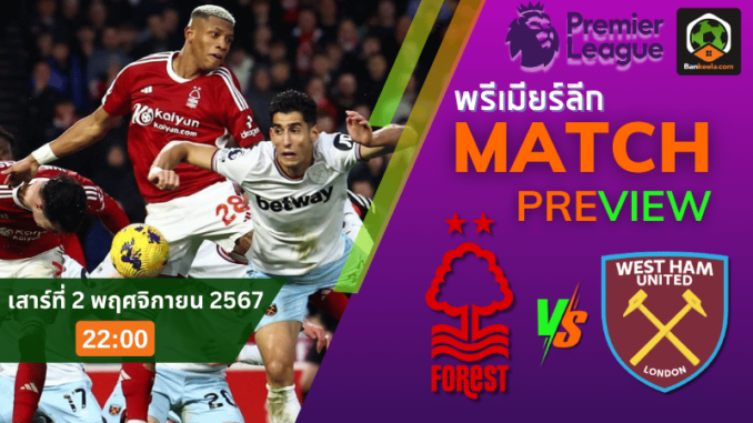 วิเคราะห์บอลสด พรีเมียร์ลีก 2024 น็อตติ้งแฮม ฟอเรสต์ ปะทะ เวสต์แฮม ยูไนเต็ด วันเสาร์ที่ 2 พฤศจิกายน 2567 เวลา 22.00 น.