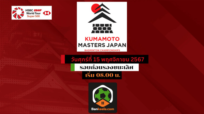 การแข่งขันแบดมินตัน “BWF Kumamoto Masters Japan 2024” กำลังจัดขึ้นระหว่างวันที่ 12-17 พฤศจิกายน 2024 ที่เมืองคุมาโมโตะ ประเทศญี่ปุ่น ทัวร์นาเมนต์นี้เป็นส่วนหนึ่งของ BWF World Tour Super 500 โดยมีเงินรางวัลรวม 420,000 ดอลลาร์สหรัฐ ทัวร์นาเมนต์นี้เป็นหนึ่งในรายการสำคัญประจำปีที่รวมนักแบดมินตันระดับท็อปจากทั่วโลกมาประชันฝีมือกันในบรรยากาศที่เข้มข้นและเต็มไปด้วยความท้าทาย แฟนแบดมินตันทั่วโลกต้องห้ามพลาด เพราะนี่คือสนามที่อาจเปลี่ยนแปลงอันดับโลกและสร้างสถิติใหม่ให้กับวงการได้อีกครั้ง!