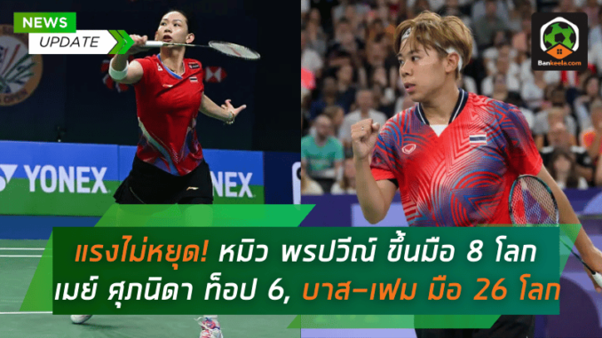 กระแสแบดมินตันไทยยังคงร้อนแรงอย่างต่อเนื่อง โดยเฉพาะในประเภท หญิงเดี่ยว ที่นักตบลูกขนไก่สาวไทยขยับอันดับโลกขึ้นหลายตำแหน่ง นำโดย “หมิว” พรปวีณ์ ช่อชูวงศ์ ที่เพิ่งทำผลงานยอดเยี่ยมในศึก อินเดีย โอเพ่น 2025 พร้อมกับขยับขึ้นมารั้งอันดับ 8 ของโลก อย่างเป็นทางการ ขณะที่ “เม” ศุภนิดา เกตุทอง ฟอร์มร้อนแรงไม่แพ้กัน พุ่งขึ้น ท็อป 6 ของโลก ด้าน “บาส” เดชาพล พัววรานุเคราะห์ และ “เฟม” ศุภิสรา เพียวสามพราน คู่ผสมสายเลือดใหม่ของไทย ขยับขึ้นมาอยู่ที่ อันดับ 26 ของโลก ในการประกาศอันดับล่าสุดของ สหพันธ์แบดมินตันโลก (BWF)