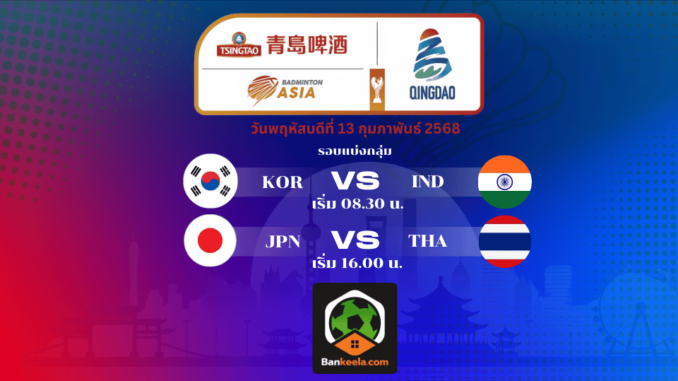 โปรแกรมถ่ายทอดสดการแข่งขัน แบดมินตัน Badminton Asia Mixed Team Championship 2025 (วันที่ 13 กุมภาพันธ์ 2568)