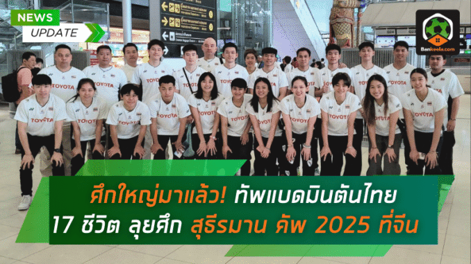 กองทัพนักตบลูกขนไก่ทีมชาติไทยพร้อมออกศึกสุดยิ่งใหญ่ในศึก สุธีรมาน คัพ 2025 หรือแบดมินตันทีมผสมชิงแชมป์โลก โดยออกเดินทางจากท่าอากาศยานสุวรรณภูมิสู่เมืองเซี่ยเหมิน สาธารณรัฐประชาชนจีน ตั้งแต่วันที่ 25 เมษายนที่ผ่านมา เพื่อทำศึกใหญ่ระหว่างวันที่ 27 เมษายน – 4 พฤษภาคม 2568 เป้าหมายชัดเจนทะลุรอบแบ่งกลุ่ม เข้าถึงรอบ 8 ทีมสุดท้ายให้ได้