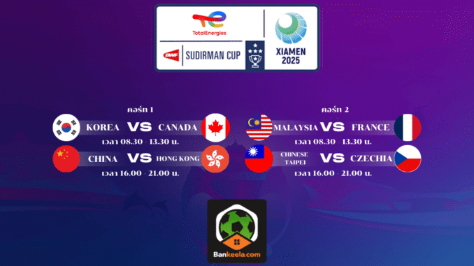 โปรแกรมถ่ายทอดสดการแข่งขัน แบดมินตัน สุธีรมาน คัพ 2025 (วันที่ 28 เมษายน 2568)