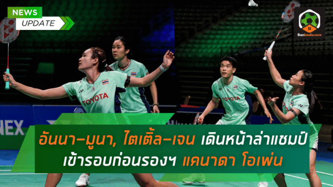 สองคู่ความหวังของทัพลูกขนไก่ไทย “อันนา-มูนา” และ “ไตเติ้ล-เจน” ระเบิดฟอร์มสุดดุดัน ไล่ต้อนคู่แข่งแบบไม่เหลือร่องรอย ผงาดผ่านเข้าสู่รอบก่อนรองชนะเลิศแบดมินตัน แคนาดา โอเพ่น 2025 ด้วยฟอร์มการเล่นที่แสดงถึงมาตรฐานระดับโลก ขับเคี่ยวแบบไม่ปรานีคู่แข่งจนสนามลุกเป็นไฟ สมศักดิ์ศรีมือวางของรายการ และยังคงเป็นตัวเต็งของแฟนแบดมินตันไทยที่ตั้งตารอคอย