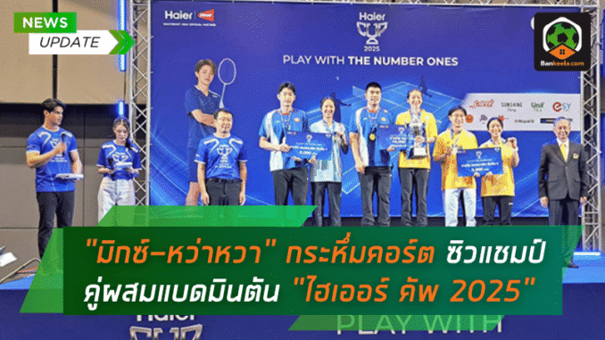 เรียกเสียงเฮลั่นจากแฟนแบดมินตันไทย เมื่อ “มิกซ์” รัชพล มรรคศศิธร จับคู่กับ “หว่าหวา” นัทธมน ไล้สวน สองดาวรุ่งจากสังกัดเจเล่ เอสบียู/บ้านทองหยอด โชว์ฟอร์มโหด ตบกระหน่ำคว้าแชมป์ประเภทคู่ผสมในศึกใหญ่ ไฮเออร์ คัพ 2025 ได้อย่างสุดยอด หลังต้อนคู่แข่งในรอบชิงแบบไม่ไว้หน้า 2 เกมรวด 21-19 และ 21-15 สมราคาคู่เต็งแชมป์