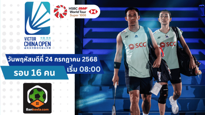 โปรแกรมถ่ายทอดสดการแข่งขัน BWF China Open 2025 (วันที่ 24 กรกฎาคม 2568)