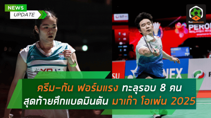 ฟอร์มกำลังฮอตไม่หยุดสำหรับสองขุนพลแบดมินตันไทย “ครีม บุศนันทน์ อึ๊งบำรุงพันธุ์” และ “กัน กันตภณ หวังเจริญ” ที่โชว์ฟอร์มดุดัน ไล่ตบคู่แข่งผ่านเข้ารอบ 8 คนสุดท้าย แบดมินตัน มาเก๊า โอเพ่น 2025 ได้อย่างสมศักดิ์ศรี ท่ามกลางสายตาแฟนลูกขนไก่จากทั่วโลกที่ต่างจับจ้องผลงานของทั้งคู่ในการไล่ล่าแชมป์ระดับซูเปอร์ 300 รายการนี้