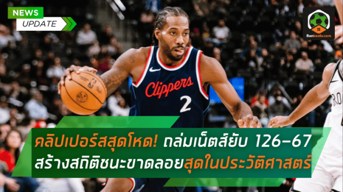 คาไว เลนเนิร์ด โชว์ฟอร์มสมราคา ซัดไป 23 แต้ม ขณะที่ เจมส์ ฮาร์เด้น เติมอีก 21 คะแนน พา แอลเอ คลิปเปอร์ส ไล่ถล่ม บรู้กลิน เน็ตส์ แบบไม่ไว้หน้า 126-67 ในศึกบาสเกตบอล NBA เมื่อคืนวันพุธที่ผ่านมา เกมนี้ไม่เพียงแค่เป็นชัยชนะที่ขาดลอยที่สุดของคลิปเปอร์ส แต่ยังเป็นความพ่ายแพ้ที่ย่อยยับที่สุดในประวัติศาสตร์ของเน็ตส์อีกด้วย