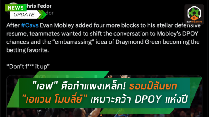 ศึก NBA ฤดูกาล 2024/25 ยังไม่จบ แต่สมรภูมิสำหรับรางวัลเกียรติยศส่วนบุคคลอย่าง “ผู้เล่นเกมรับยอดเยี่ยมแห่งปี” หรือ Defensive Player of the Year (DPOY) กำลังเดือดทะลุจุดเดือด เมื่อหลายเสียงเริ่มแตกเป็นสองขั้ว หนึ่งฝั่งเชียร์ เดรย์มอนด์ กรีน ขาประจำแห่ง โกลเด้น สเตต วอร์ริเออร์ส อีกฝั่งเทใจให้ชายผู้ชื่อ เอแวน โมบลี่ย์ แห่ง คลีฟแลนด์ แควาเลียร์ส โดยมีเสียงสนับสนุนชัดเจนจากรุ่นพี่ร่วมทีมอย่าง ทริสแทน ธอมป์สัน ที่ออกมายืนยันแบบไม่มีกั๊กว่า “DPOY ปีนี้ ต้องเป็นของเอฟ เท่านั้น!”