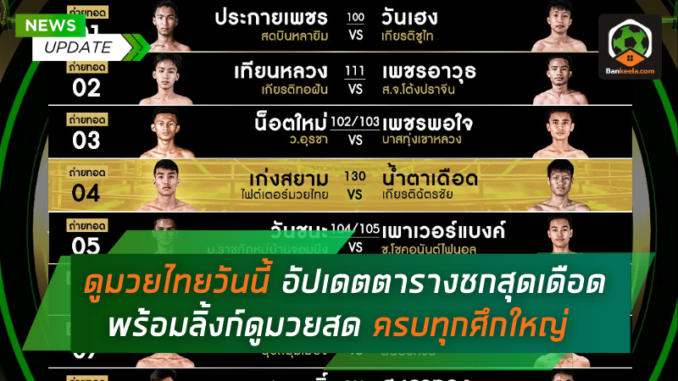 ดูมวยไทยวันนี้ อัปเดตตารางชกสุดเดือด พร้อมลิ้งก์ดูมวยสด ครบทุกศึกใหญ่