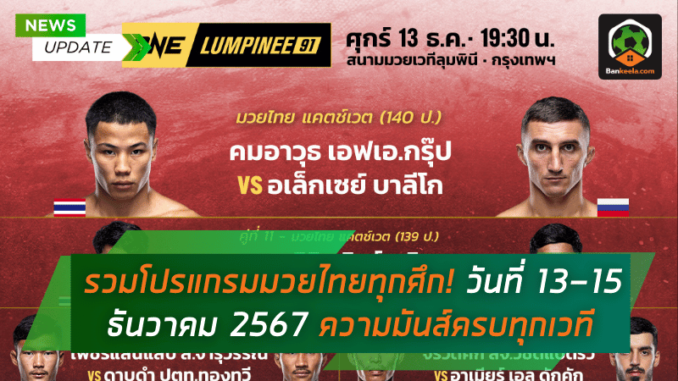 โปรแกรมมวยไทย วันศุกร์ที่ 13 ธันวาคม 2567