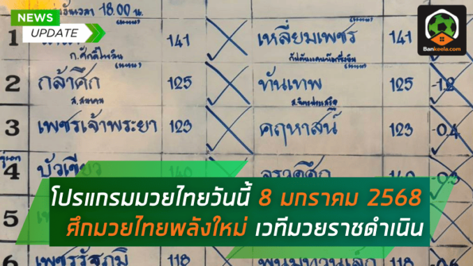 โปรแกรมมวยไทยพลังใหม่ วันที่ 8 มกราคม 2568