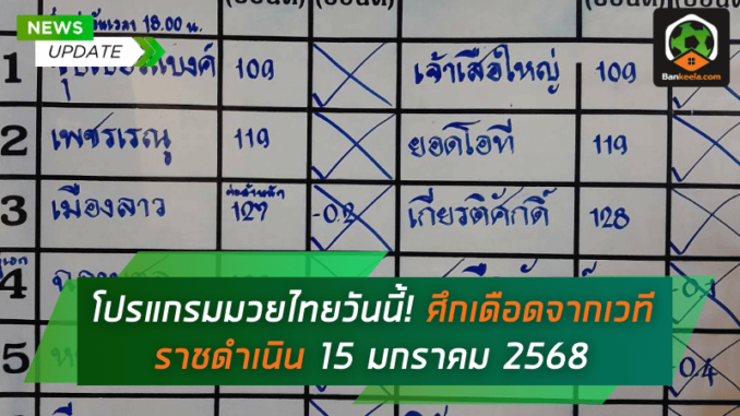 คอกีฬามวยไทยห้ามพลาด! วันพุธที่ 15 มกราคม 2568 เตรียมพบกับการแข่งขันมวยไทยสุดมันจากรายการชั้นนำที่จัดเต็มทุกความตื่นเต้น ไม่ว่าจะเป็น ศึกมวยไทยพลังใหม่ ณ เวทีมวยราชดำเนิน ที่แบ่งการถ่ายทอดสดออกเป็นสองช่วงเวลา พร้อมลิ้งก์ดูมวยสดครบถ้วน ให้แฟนมวยติดตามการต่อสู้อย่างจุใจผ่าน True4U และ GOSPORT