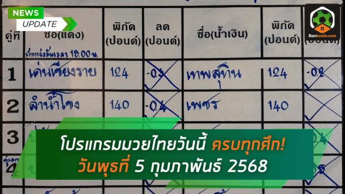 โปรแกรมมวยไทย วันพุธที่ 5 กุมภาพันธ์ 2568