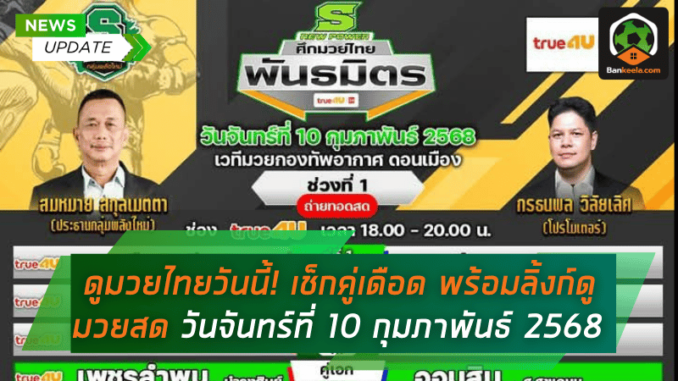 📌 ติดตามทุกศึกมวยไทยแบบสด ๆ ได้ที่ มวยสดบ้านกีฬา อัปเดตโปรแกรมมวยทุกวัน พร้อมลิ้งก์ดูมวยสดแบบครบวงจร ให้คุณไม่พลาดทุกความมันส์ของวงการมวยไทย!