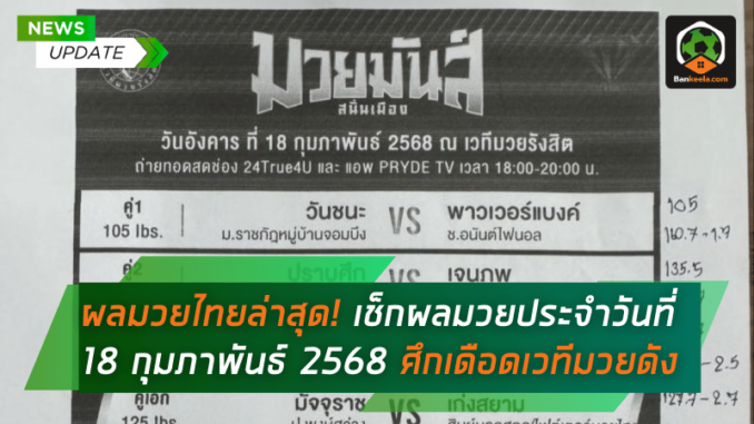 🔥 สรุปผลมวยไทย วันอังคารที่ 18 กุมภาพันธ์ 2568 – ศึกมวยมันส์สนั่นเมือง