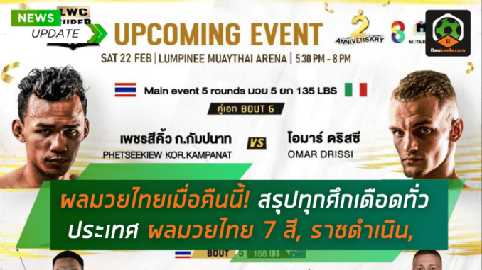 สรุปผลมวยไทย วันเสาร์ที่ 22 กุมภาพันธ์ 2568