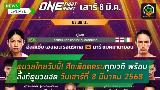 ดูมวยไทยวันนี้! ศึกเดือดครบทุกเวที พร้อมลิ้งก์ดูมวยสด วันเสาร์ที่ 8 มีนาคม 2568