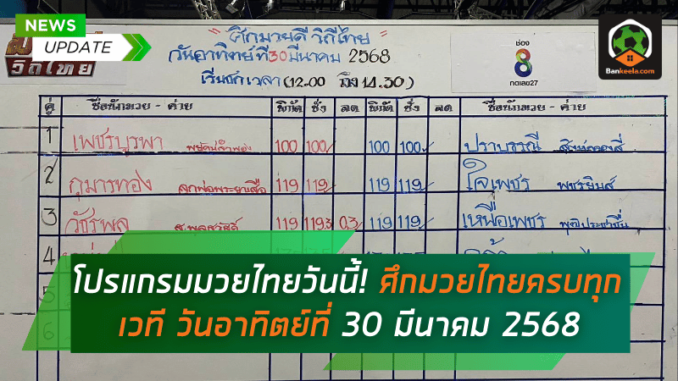 โปรแกรมมวยไทย วันอาทิตย์ที่ 30 มีนาคม 2568