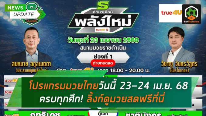โปรแกรมมวยไทย วันพุธที่ 23 เมษายน 2568