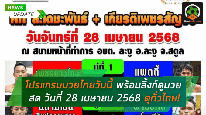 โปรแกรมมวยไทย วันจันทร์ที่ 28 เมษายน 2568