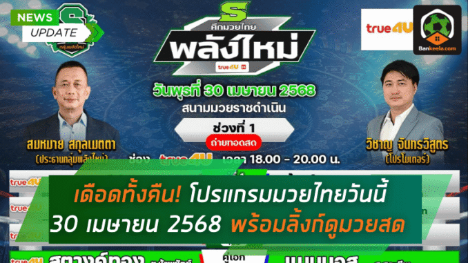 โปรแกรมมวยไทยวันนี้ วันพุธที่ 30 เมษายน 2568