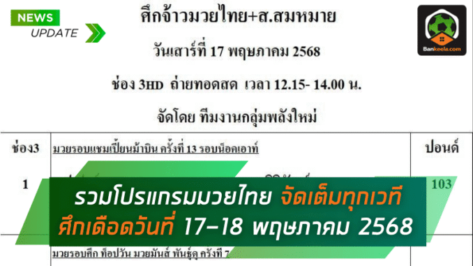 📅 โปรแกรมมวยไทย วันเสาร์ที่ 17 พฤษภาคม 2568