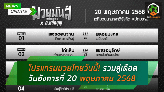 ตารางมวยไทย วันอังคารที่ 20 พฤษภาคม 2568