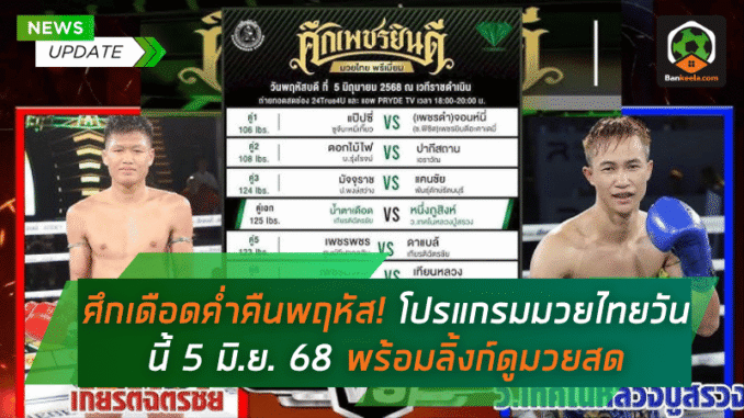 ศึกเดือดค่ำคืนพฤหัส! โปรแกรมมวยไทยวันนี้ 5 มิ.ย. 68 พร้อมลิ้งก์ดูมวยสดแบบจัดเต็ม