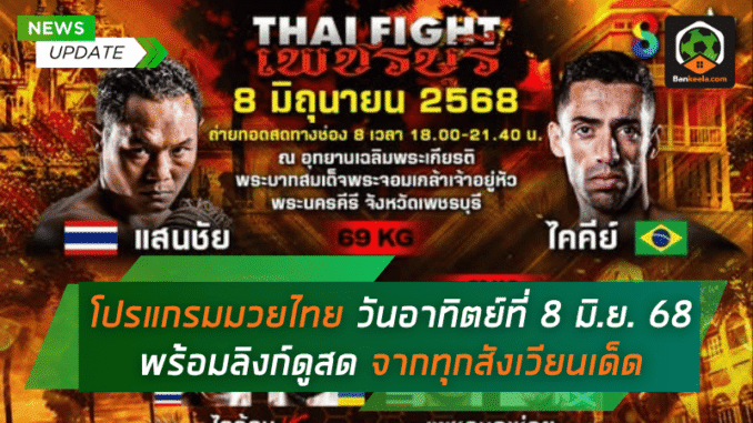 ระเบิดความมัน! โปรแกรมมวยไทยวันอาทิตย์ที่ 8 มิถุนายน 2568 พร้อมลิงก์ดูสดจากทุกสังเวียนเด็ดทั่วประเทศ