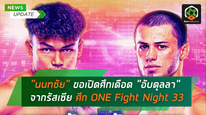 ระเบิดศึกไฟต์มันสะเทือนวงการมวยไทยอีกครั้งกับ ONE Fight Night 33 ในวันเสาร์ที่ 12 กรกฎาคม 2568 โดยหนึ่งในคู่เอกของรายการต้องจับตามองให้ดี เพราะเป็นการปะทะกันของสองนักชกสายบู๊ฟอร์มแรงจากสองซีกโลก นำโดย “นนทชัย จิตรเมืองนนท์” นักชกขวัญใจชาวไทยวัย 26 ปี จากชุมพร เจ้าของดีกรีแชมป์ Road To ONE Thailand ซีซัน 2 ที่กำลังมาแรงแบบฉุดไม่อยู่ เปิดศึกต้อนรับน้องใหม่จากแดนหมีขาว “อับดุลลา ดายาคาเอฟ” นักชกสายบู๊วัย 23 ปีจากรัสเซีย ที่ไฟต์นี้จะขึ้นเวทีชกในกติกา มวยไทย รุ่นเฟเธอร์เวต (145-155 ปอนด์) เป็นครั้งแรกภายใต้เวที ONE
