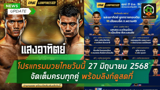 โปรแกรมมวยไทย ศึก ONE ลุมพินี วันศุกร์ที่ 27 มิถุนายน 2568