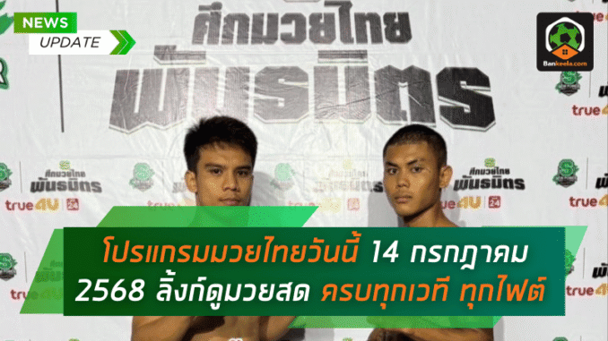 โปรแกรมมวยไทยวันนี้ วันจันทร์ที่ 14 กรกฎาคม 2568 กลับมาเดือดระอุอีกครั้ง คอหมัดมวยเตรียมระเบิดอารมณ์กับ ผลมวยไทย สดใหม่จากทุกเวทีดังทั่วประเทศ ไม่ว่าจะเป็น มวยไทย 7 สี, ศึก ONE ลุมพินี, ศึกจ้าวมวยไทย ช่อง 3, ศึก RWS ราชดำเนิน เวิลด์ซีรีส์, ไทยไฟท์ และศึกเพชรยินดี บ้านกีฬา รวบรวมมาเสิร์ฟครบทั้ง ตารางมวยไทย และลิ้งก์ ดูมวยไทย สดๆ ยิงตรงสังเวียน ครบทุกค่ายทุกช่องให้แฟนๆ ได้มันส์กันเต็มที่ พร้อมพากย์เข้มข้นแบบนักข่าวสนาม