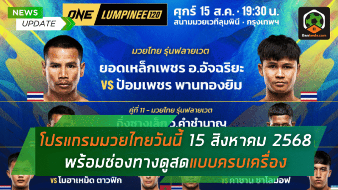 วันนี้แฟนมวยไทยเตรียมมันส์สะใจ เพราะโปรแกรมมวยแน่นเอี๊ยด อัดเต็มด้วยคู่เอก-คู่รองจากหลากหลายศึกดัง ตั้งแต่ ศึก ONE ลุมพินี ไปจนถึง ศึกเพชรยินดี เรียกได้ว่าค่ำคืนนี้เวทีลุกเป็นไฟแน่นอน บ้านกีฬา รวบรวมทั้งโปรแกรมแข่งขัน ช่องทาง ดูมวยไทย และรายละเอียดครบถ้วนมาให้แล้ว เหมาะสำหรับสาย ผลมวยไทย ที่ไม่อยากพลาดแม้แต่ยกเดียว