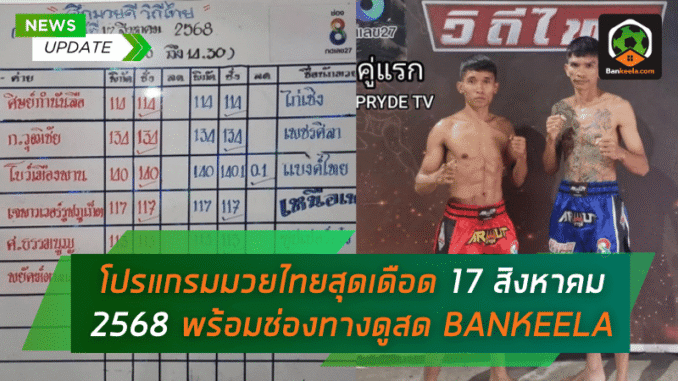 โปรแกรมมวยไทยสุดเดือด 17 สิงหาคม 2568 พร้อมช่องทางดูสด BANKEELA