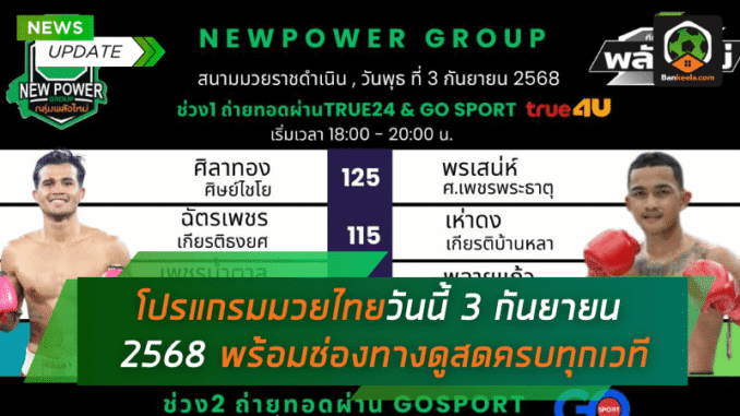 โปรแกรมมวยไทย วันพุธที่ 3 กันยายน 2568