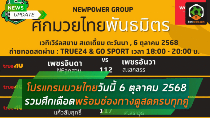 โปรแกรมมวยไทยวันนี้ 6 ตุลาคม 2568 รวมศึกเดือดพร้อมช่องทางดูสดครบทุกคู่