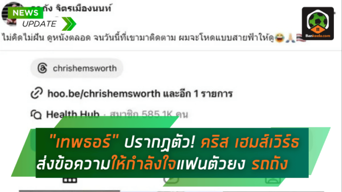 แต่เรื่องยังไม่จบเพียงแค่นั้น เมื่อ คริส เฮมส์เวิร์ธ ไม่เพียงแต่กดติดตามเท่านั้น แต่เขายังส่งวิดีโอคลิปทักทายและให้กำลังใจ รถถัง ด้วยใจความที่เป็นกันเองและอบอุ่นว่า