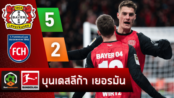 การแข่งขันฟุตบอล บุนเดสลีกา 2024 เมื่อคืนที่ผ่านมา ไบเออร์ เลเวอร์คูเซิน โชว์ฟอร์มดุดัน เปิดบ้านถล่ม ไฮน์เดนเฮลม์ 5-2 ที่สนามไบอารีน่า แมตช์นี้เต็มไปด้วยความมันส์ในทุกนาที ด้วยการทำเกมรุกที่ยอดเยี่ยมและการประสานงานอันลงตัวของผู้เล่นเจ้าถิ่น ทำให้แฟนบอลทั่วโลกต้องพูดถึง แมตช์นี้ยังส่งผลต่ออันดับใน ตารางบอล บุนเดสลีกาอย่างมาก