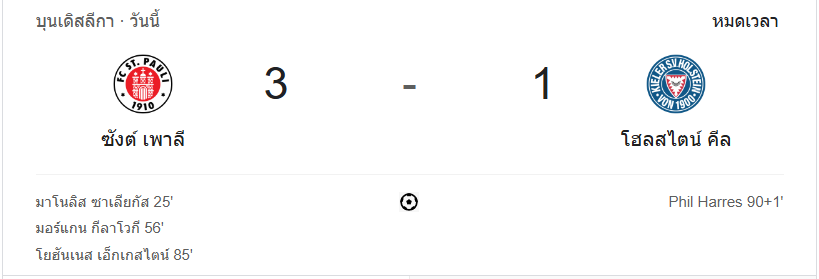 ผลบอลสด บุนเดสลีกา 2024 ระหว่าง ทีม ซังค์ เพาลี vs โฮลสไตน์ คีล วันนี้ 30/11/67 ดูบอลย้อนหลัง คลิปไฮไลท์ ดูบอลบุนเดสลีกา 2024