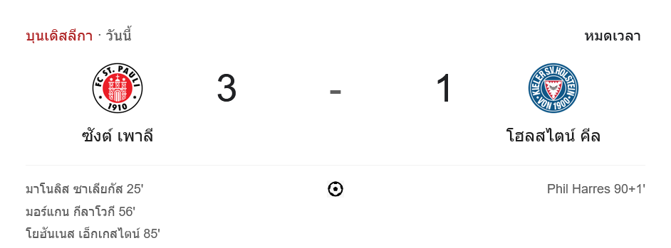 จาก : ผลบอลสด บุนเดสลีกา 2024 ระหว่าง ซังค์ เพาลี 3-1 โฮลสไตน์ คีล วันนี้ 30/11/67 – บ้านกีฬา