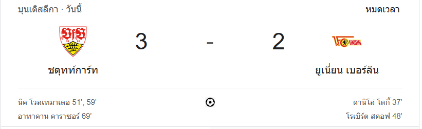 ผลบอลสด บุนเดสลีกา 2024 ระหว่าง ทีม สตุ๊ตการ์ต vs ยูเนี่ยน เบอร์ลิน วันนี้ 07/12/67 ดูบอลย้อนหลัง คลิปไฮไลท์ ดูบอลบุนเดสลีกา 2024