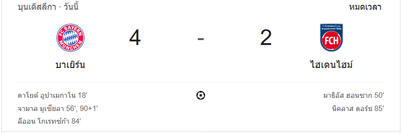 จบเกม: บาเยิร์น มิวนิคเอาชนะไฮน์เดนเฮลม์ไปด้วยสกอร์ 4-2