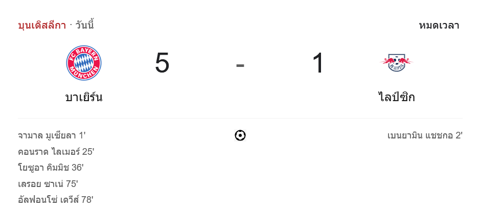 จาก : ผลบอลสด บุนเดสลีกา 2024 ระหว่าง บาเยิร์น มิวนิค 5-1 แอร์เบ ไลป์ซิก วันนี้ 21/12/67 – บ้านกีฬา